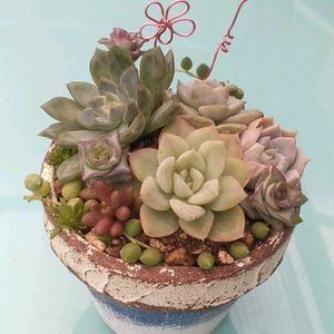 今年の母の日の贈り物、 お嫁さんから、可愛い多肉の寄せ植えでした。 ( ´˘ ` * )✿*.。.:*♡💕