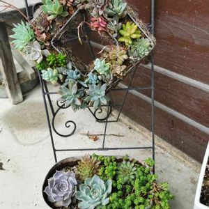 昨日、久しぶりのWSに参加 初チャレンジの大物 多肉の二段ケーキ寄せ ⬅️初めに決めていた正面 ↗️雰囲気の違う背面 ↘️出来上がってみたらここもいいかも…の右側ピンクゾーン 木漏れ日の射すテラス席は風が心地好く コロナ対策に気を配りつつ 少人数でのWSを楽しみました