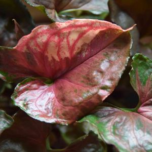 種類不明のシンゴニウム🌱 このぴんくの入り方がたまらん😍 ジュエルピンクなのかなー、ジュエルっぽい葉っぱも出てきてる🤔