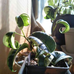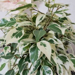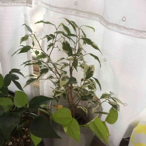 斑入りで白いところが多く三色ある葉に最近惹かれてます。 色々迷ってベンジャミン スターライトにしました。