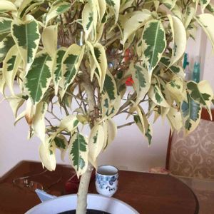こんにちは🌦 斑入りベンジャミンです😊 購入して、居心地が悪いのか、葉を半分落としてしまい、二本立てだったので、二鉢に植え替えました😁 今は、居心地が良いみたいです😇