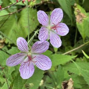 ビッチュウフウロ(フウロソウ科) 岡山県(備中)で最初に発見された 事から 長野県、東海地方、近畿北部、中国地方に分布 山地の湿性草地、湿原などに生育する多年草 ただ生育が確認されているのは限られた場所で 他所では個体数も生育確認地点も少ない 花期は8月〜11月 草丈40〜80㎝ 花は直径2㎝ほど 花弁に紅紫色の網目状の脈があるのが特徴 雄蕊は10本で紫色の葯はすぐに落ちる その後雌蕊の柱頭が開き始める 茎と葉に下向きの伏毛がある 葉は対生幅5〜8㎝の掌状 根生葉は5深裂 花茎に付く葉は3裂 果実は5個の蒴果 長野、岐阜、愛知など複数の県でレッドリストに選定されている この日ここにあるのは知っていたのに 他の子(お花)の方に気持ちがいってしまい サクッと写真を撮っただけでした〜 後から葉も蕾も果実も茎の様子も何より葉っぱの写真を撮ってなかったのです ダメ👎ですねー 失敗しました〜反省反省😂