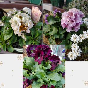 今日のお花 パンジー ローブドゥアントワネット マリーリーン 羽衣咲きベール ホームセンターで半額だった 鮮やかなオレンジのパンジー 雨で☔️今日は下向いて可哀想な パンジーさん達 春は近いぞー がんばれ💕❤️🤗