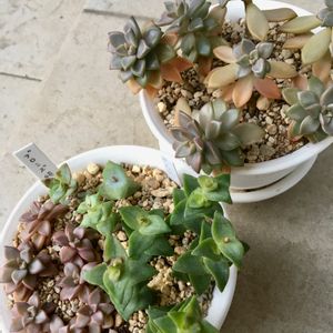 みーぽんさんからいただいた多肉ちゃんを、2つの寄せ植えにしてみました。 状態のよい綺麗な多肉ちゃんでしたので、とてもスッキリ綺麗にできて嬉しいです。 (*^▽^*)🎶 みーぽんさん、ありがとうございました。 頑張ろう❗日本‼️ 👊✨