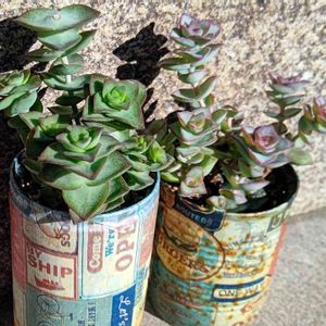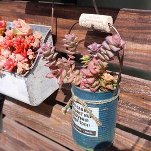 セリアでハニワとブリキ缶を見つけたので初めて多肉の寄せ植えに挑戦💕 多肉はダイソー、セダムはホームセンターで調達 水やりしてイイのかわからず葉水のみで半月様子見→からの昨日ついに水やり! (ブリキ缶は釘で穴を開けました)