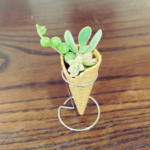 部屋にアイスのコーンがずーっと転がってるので ついに貰いました。 息子3歳へ。 片付けないと何でも多肉入れにされるわよ。 そのうちプラレールも改造されるわよ。