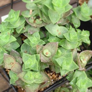 🍂十字星(じゅうじぼし)クラッスラ属 緑の葉っぱで、十字架や手裏剣みたいな見た目 倒れずに上に伸びるタイプ ぱっと見、星の王子さまとの違いが分からない?