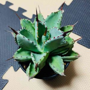 今日は暖かいですね😊 お部屋チームのアガベ達にいっせいに水やりです🚰 そろそろおメメを覚ましてもらわないとね♪ うちの新人ちゃんのキュービック💓 うねうねの赤トゲがかっこいいです🥰