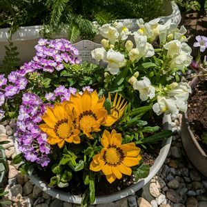 今日のお花キンギョソウ🤍💛🩷猛暑の中🫠寄せ植え鉢で元気に咲いています😊✨ 🏷今日のお花に参加させて頂きます🥰