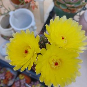 おはよぅございます☀ サボテン🌵『青王丸』の花が満開です💛 ̖́- 今年は、14 コ の花を付けてくれました❣️ ④ 4/25 の写真です!