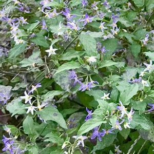 アメリカイヌホウズキ 秋めいてくると、花の色が濃い紫に 変わってくる(白いままの花もある) イヌホウズキ類は似た形の葉っぱ、花 種子が何種類かあり識別が難しい。 識別のひとつとして、アメリカイヌホウズキは、この時期に花の色が濃い紫になるので見分けやすい!👀