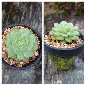 幸田 木工市で初めて迎えたエケベリア属ドンド ドンドは交配種だけど2説有るようです😅 静夜(デレンベルジー)とルンヨニーの交配(この説は怪しいらしい)・静夜と王妃錦司晃の交配種だそうです。どことなく静夜っぽいね💕 セバスたんさんのリメ鉢にハルさんのドンドを植えてみました😍
