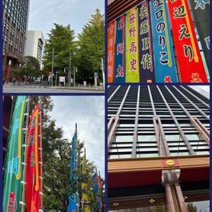 人形町、文化の日を前に、初めての明治座。 まだ紅葉前の銀杏並木。 見川鯛山原作『本日も休診』千秋楽。 街路樹に並ぶ幟旗に、こちらのテンションが上がりました。 唯一無二の豪華な役者さん方が揃う中、 個人的には江口のりこさんと矢部太郎さん、音楽🎻パスカルズ😍(メンバーには『さよなら人類』の、たま も) 矢部太郎の漫画『大家さんと僕』に人の良さと優しさに溢れていて、昔から見ているのにプロフィールは同学年でびっくり🫢しかも、158㌢39㌔😱 かっこよくて憧れの江口のりこさんはお若く45歳🫨やっぱり素敵 2枚目)内装のお花モチーフのシャンデリア。 休憩中に劇場で食べるお弁当には憧れますが🍱、今回は節約して 干しエビ入り卵焼きと、小松菜と揚げの肉巻きを作って持参🥬🥓←うまくできた😅 3枚目)帰りはお祭りの商店街。 秋色リースがかわいいカフェ。 お目当ての鯛焼き・柳屋さんはお休みで、自家焙煎ほうじ茶の森の園さんのソフト🍦 ゆるキャラ 下町KING 人之助(にんのすけ)の存在は初認識