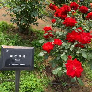 かがやきという薔薇が咲いていました。 薔薇の種類が豊富でいろいろな薔薇が 綺麗に咲いていました、