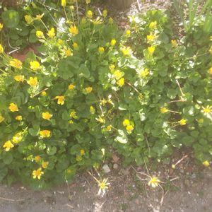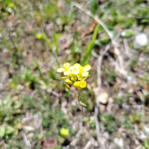 お出掛け先の駐車場付近 家族を待って ブラ🚶ブラ🚶してると 目に飛び込んできた 💛 💛 💛 💛 💛 黄色いものは コメツブツメクサでした😃 砂利敷の駐車場の地面が見えてるところに群生してました。 🚙に運ばれて来たのでしょうか?