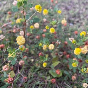 4月22日撮影 散歩道☺️ もう2か月前、ごめんなさい🙏 久しぶりの散歩道。懐かしのコメツブツメクサです。 いつかクスダマツメクサを見たい!って思っていましたが、ふふふー、見られたのですよ。どこで? 早く少しずつ追いつきますね。 コメツブツメクサ(米粒詰草) マメ科シャジクソウ属 1年草。道端や河原などに生える雑草。 和名は、シロツメクサに似ているが全体に小さいことに由来する。コゴメツメクサ(小米詰草)、キバナツメクサ(黄花詰草)ともいう。 (Wikipedia より)