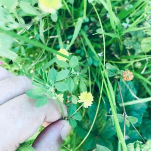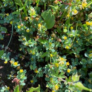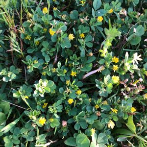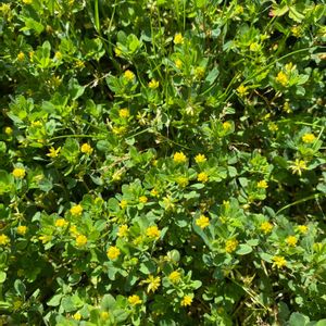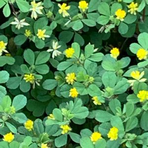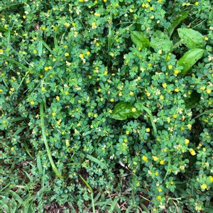 コメツブツメクサ(米粒詰草) マメ科 一年草 原産地 ヨーロッパ 西アジア 帰化植物 日当たりのいい空き地 、道端、芝生と何処にでも見られ、最近ほんとに増えて来ましたね。😌 これが家の芝生にも出てきたから大変です。 🌱🌱🥹 ここは空き地です。シロツメクサがコメツブツメクサに押され気味でした。🌱🌱😅