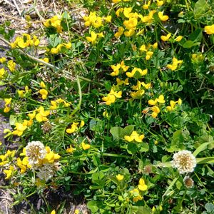 コメツブツメクサ(米粒詰草) マメ科シャジクソウ属 小さな黄色の花が咲くと こんな所にも増えて来たのかと驚きます🌼☘️ 花後には花弁が下向きになり残ります これはシロツメクサと同じ シャジクソウ属の特徴です🌼😊🎶