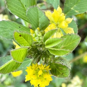 黄色の野草💛💛💛 1️⃣コメツブウマゴヤシ(米粒馬肥やし) マメ科 ウマゴヤシ属 花1つ1つの大きさ3〜4mmで、花序の大きさ6mm、小葉の大きさ1〜1.5cm 螺旋状に花が付き、葉の先端が少し窪み、鋸歯がある 2️⃣コメツブツメクサ(米粒詰草) マメ科 シャジクソウ属 花1つ1つの大きさはコメツブウマゴヤシと同じ3〜4mmで、花序の大きさ(全体の大きさ)は6mm、小葉の大きさは0.5〜1cmと小さい 球状の花 3️⃣ヤブヘビイチゴ(薮蛇苺) バラ科 キジムシロ属 花の大きさは2cmとヘビイチゴより大きい 葉の先は細い 萼片の下の副萼片は、萼片より大きい 4️⃣ウマノアシガタ(馬の足形) キンポウゲ科 根生葉が馬の足形に似ているという事が名前の由来 5️⃣ニガナ(苦菜) キク科