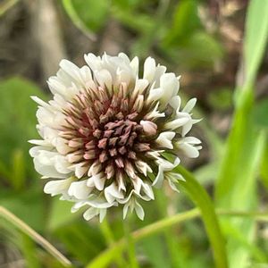 ❶❷今日のお花 シロツメクサ🤍🍀 ❸以下はおまけです ムラサキツメクサ🟣🍀 ❹ベニバナツメクサ🔴🍀 ❺コメツブツメクサ○🍀 ❺は2年ほど前からの棟の南側にびっしり蔓延っています🤔