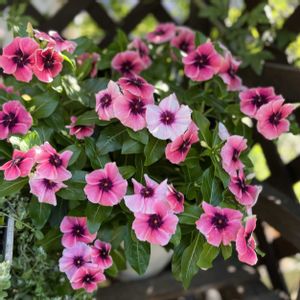 ʚ♥︎ɞ*。:°ஐ*ニチニチソウ*。:°ஐ*ʚ♥︎ɞ* モネシリーズ 今季お迎えのニチニチソウ🌿 アンティークな色合いに色の変化も素敵なモネシリーズです꒰ღ˘◡︎˘ற꒱♡ 30cm程の大きな株に育ちました。 ニチニチソウは生育旺盛なので大きめの鉢で育てるととても華やかになりますよ🌿🌸🌿