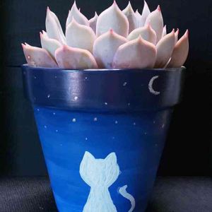 オリオン 代買いしてもらったオリオンを『ひたん作 リメ鉢』に植え替えました🎵 しろにゃんこが空を見上げてます🌜️ 夜空に輝く🌟は、 オリオン✨ 🌱