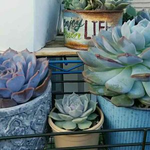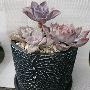 少し紺に近い黒の鉢に 同系のピンクエケベリア 集めてみた!