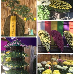 キク(菊) キク科キク属💛 岩手県西磐井郡平泉町💛 世界遺産 中尊寺❣️の菊まつり💛 中尊寺境内の本堂や参道脇は😊 丹精込めた菊の競演🍁