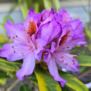 ムラサキのシャクナゲ(╹◡╹)かな? 私は初めて見たのと、しかも今って時期?? かなり大きく育っていて、1m位になっていました