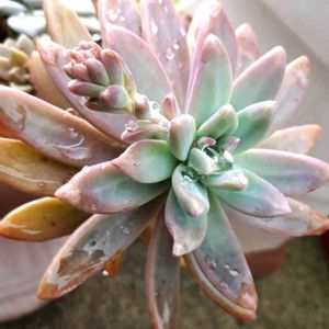 雨上がりの秋麗。 普段は地味なコも、キラキラして可愛く見える(*´ー`*)♡ ちなみに。 うちでは秋麗は不死鳥、マンネングサに続く恐怖の繁殖シリーズの1員となっております( ̄∇ ̄;)