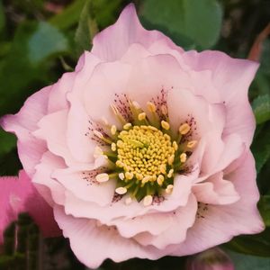 数年前購入株(売れ残り名無し一重咲タグ𓂃 💸💴💰😢) クリーム色シングル 🌸一昨年フツーのシングル 🌸去年フツーのセミダブル 🌸今年ダブル(ラージセミダブル❔ヒデコート❔)🤔❓ ダブルに失敗した名無しなのかなー🤔 ヒデコートならうれしいな〜🌸 去年初開花の種からの似たモコモコセミダブルが1株あるので今年はどうなるのだろうー🤔(生きてるけど今のところ花芽無し) 他の株もだけど今年は黄色味が少ない🤔