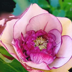 購入株✿*:・゚ 緑に紫のピコティ これも雌しべが赤くてカワイイ❤ 久しぶりの開花🌸 沖縄の地震が心配…😢