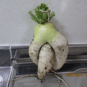 今日の家庭菜園 タクアンを作るために、大根を採ってきました 立派なヘンタイさんがいました 😁 タグお借りしまーす