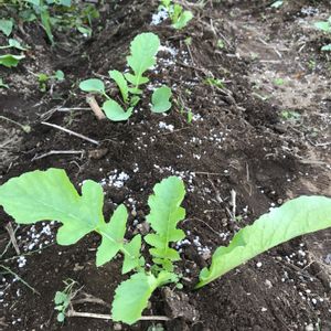 今朝の畑C。 50メートルとはいえ、目の前の畑Aに比べるとどうしても見に行く回数は少なくなります。 左から 🥰青菜:来週には収穫できそう 😅からし菜:青菜より1週間遅れ、ムラがある 😌キャベツ:ボロボロのレース状の葉の中にちょっとだけ期待 😌白菜:キャベツと同様 😲小カブ:僅かに残った株に小さなカブ 🤩大根:少しだけ青首が覗いている