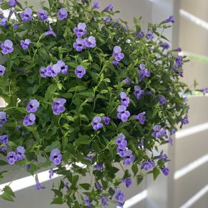 『スーパートレニアカタリーナ ブルーリバー』 6月に作った壁掛け式の スリットハンギングバスケットは 今まで3回ほど切り戻し✂️をして 徐々に大きく育ってきました ちょっと楕円形なんだけど 横幅が60cm📏になりました☺️ 葉っぱ🌿も多くて 花💜も多い これが私の好きな雰囲気です さあ👏 これからどんなパフォーマンスを 見せてくれるかな〜♡ 物置が真っ白なので 映えるかな〜と思って 引っ掛けてみました 下の方にピンク色っぽいお花も 咲いてて可愛い♡ いつもは アーチの向こうから 朝日🌅が差し込むまで ずっと日陰でいてくれる場所に います🤗