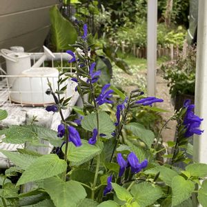 『メドーセージ』 増えて増えて...増えてます 駐車場の脇で🅿️🚙 車の乗り降りの度に触れると🦵 いい香り🫧👃🫧 高さも出るので 倒れて車にもスリスリと🫣 キズになると困るので カット✂️すると 更に大きくなって ボリューム出て💦 (picからは伝わらないね) 更に地下茎が伸びて〰️〰️ 色んな所から 顔を出しますね🌱 抜いては移植🧤の作業です メドーセージに限らないけれど 1種類のお花がシーズンになると たくさん咲く感じが好きです♪ 色んなお花が咲き乱れるのは 私にはなかなか難しいけれど それならできそうだな💭 駐車場側の 8月の定番は大好きなブルーの メドーセージにしようかな もうちょっと低い位置で咲いてくれるようにマメに剪定してみよう🙂↕️