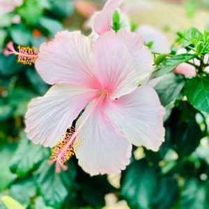 ✨ハイビスカス ピンクバタフライ✨ ハイビスカス🌺かわいい(*^^*)♬♪ 薄桃色の優しげなハイビスカス♡︎ʾʾ♬ よく見ると双子ちゃん❣️ もう少し角度変えれば良かったかな? 原産地:ハワイ諸島、マスカレン諸島 花言葉:「繊細な美」「新しい恋」 ピンクのハイビスカス:華やか✨ の花言葉
