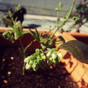 おはようございます😃 鉢植えしているブルーベリーの蕾が開いてきました😊
