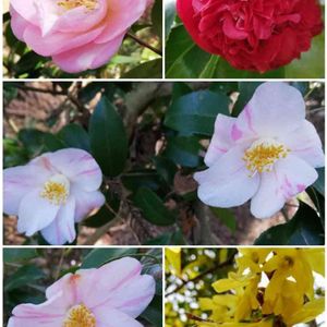 またまた椿です🙇💕 ↖ご近所のご主人好み、ピンクに少し白が入ったもの。実生だそう(シベは鳥が突っついたかな💦 ↗ひと雨受けて「紅嵐」も華やかに開花🥰 ←・↙里山、まだ日影には雪が残る県境辺りで見かけた椿。名前は「不詳」ですが、小ぶりながらピンクの縞が入り珍しい☺️ 黄色いレンギョウも近所では花盛りです🥰 😰📱の(G)メモリーがほぼ満タン💦6月から有料化になる🙄?皆さんどう対策されますかぁ…🤔❓ 私には1枚、1枚がお宝気分なので😱💦ちょっと対策に苦慮中。お知恵あれば教えて下さい🙏