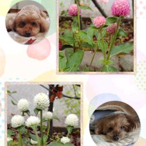 おはようございます🙋 久し振りのpicご無沙汰してます😊 梅雨に入りお花さん達も避難中です🪴😅 ①千日紅と愛犬モコ🐶🐾 雨の日が多く散歩出来ない日が増え退屈そうにしてます🐶💧 これから真夏のような暑さがやってくるので犬にとっては大変な毎日です🐶💦 ②ゼラニウムストロベリーアイス春頃からまた咲きだしました💗💗💗 🏷️キュンキュン乙女倶楽部 🏷️コラージュ仲間達 🏷️とにかくGS楽しもう! 🏷️ありがとうの花❣️ 🏷️みんな最高