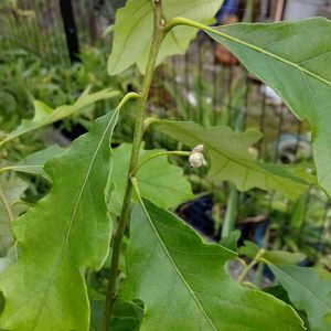 スワンプホワイトオーク Swamp White Oak Quercus bicolor いつの間にか雌花がついていました。 雄花は見てないし、ホワイトオークの仲間で雄花がついてるのも近くにないので、どんぐりにはならずこのまま萎れるんじゃないかと思います。