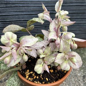 斑入りのクリスマスローズ カラーリーフのクリスマスローズが好きで育てていますが、先日お迎えした‘月白(ゲッパク)’もこの子を含む我が家のカラーリーフのクリスマスローズもみんな松村ナーセリーさんのものだと今更ながら気がつきました で、更にこの子がリヴィダス‘カレードスコープサンゴ’なのか、ステルニー‘ネオカレイドスコープ’なのか、花が咲かないと分からない…と言う事にも気がつきました💦 カレードスコープサンゴとネオカレイドスコープの双方を育てているので、同じタイミングで花が咲けば一目瞭然なんですが、長期不在中に咲いたら確認できない〰️(๐•̆ •̆๐).。oஇ