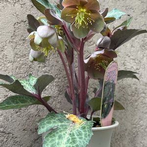 *クリスマスローズ* 童仙房さんの斑入りクリスマスローズHGCスノーフィーバー。お迎えしました。 花かと思うような新芽が赤く色づくところからスノーフィーバーと言われるそう。花が咲いているようです。