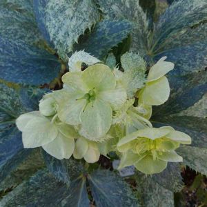 斑入りのクリスマスローズ。 ぐりーんのお花も蕊がふさふさ魅力的です。