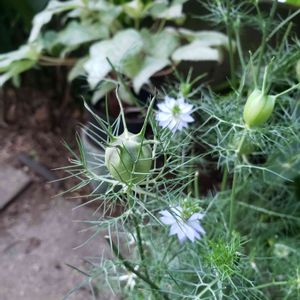 早朝のニゲラ 今年初めて購入したニゲラ GSでの爽やかな花姿 花後の愉快な姿に魅せられ 楽しんでますが 花が次々咲き 早目に終わりそう 種の準備中が多くなり 幾つか残しカットカットカット バルーン状の上の突起物が 可愛く その下のツンツンの 葉っぱがいい感じ!!! キンポウゲ科ニゲラの 早朝の一枚 《5日☀️昼27℃夜14℃》