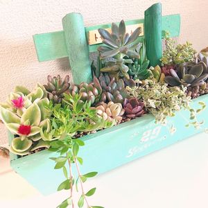ダイソーの木鉢をリメイクして寄せ植え作ったよ🌵