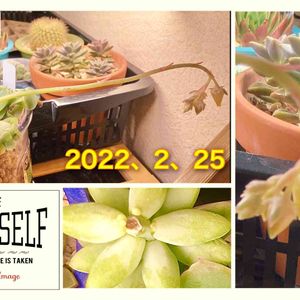 タグ参加です!花月夜から形の出来上がった蕾🥰よく伸びたな〜これなら3月初頭に咲きそう 工事の都合で屋内育ちだったので奥のブロンズ姫も3ヶ月で伸び伸び⤴️ ジェイドポイントの葉挿しから3分の2発根、カットしたビアポップも続々と子どもが出てとても順調です 奥の子達もみんな春秋型、モリモリになるのが楽しみです!