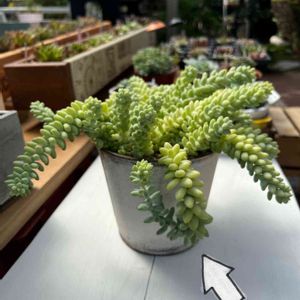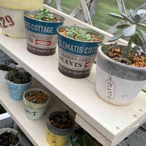 夏前に友達にもらった誰かわからない子デカい〜 冬になったら可愛い色になると聞いている😀✨ そして後ろのビアポップのブリキ鉢 マジで朽ち果てる5秒前🎤 中の土が見えてるんだよ ヤバいよヤバいよー
