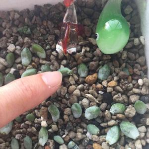 多肉植物の葉挿しに挑戦して約2週間。なんとなく葉の付け根だったところに何か出てきました🙌🎉🌱。 がんばれがんばれ。