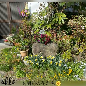 今朝の玄関前❗️ 水仙が咲きそろって、 ラッパ水仙、ペチコート水仙 ハナニラや、寄せ植えたちも 春の暖かな陽射しにニョキニョキ⁉️
